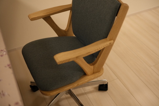 上部は栗の木で出来ており、クッションも弾力があって良い。椅子の脚はステンレスのキャスター付き回転脚になっており、僕の要望を全て叶えてくれるワークチェアとの出会いでした。