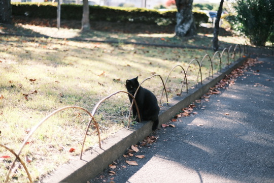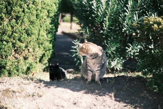 こっちには黒猫。首輪をしていないようなので、どうやら野良猫かな。野良猫にしては良い肉付きをしているので、しっかりとご飯を貰っている様子。地域猫ですかね。
