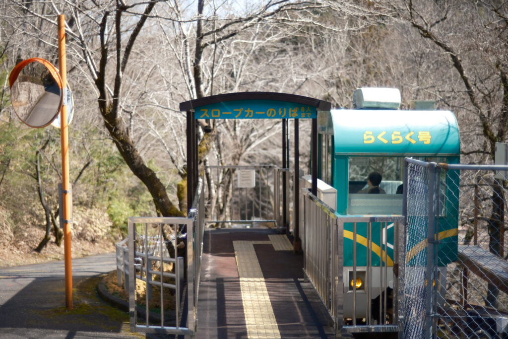 せっかくなのでスロープカー「らくらく号」に乗って向かいます。決して歩くのが疲れたわけじゃありません。楽がしたいだけです。